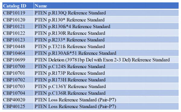 科佰生物可以提供PTEN突變類型的診斷標準品,保證診斷方法的檢測限、靈敏度、穩(wěn)定性。